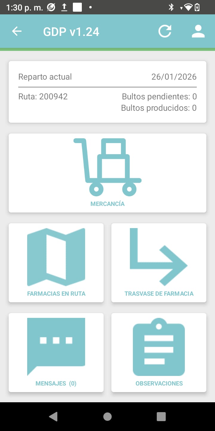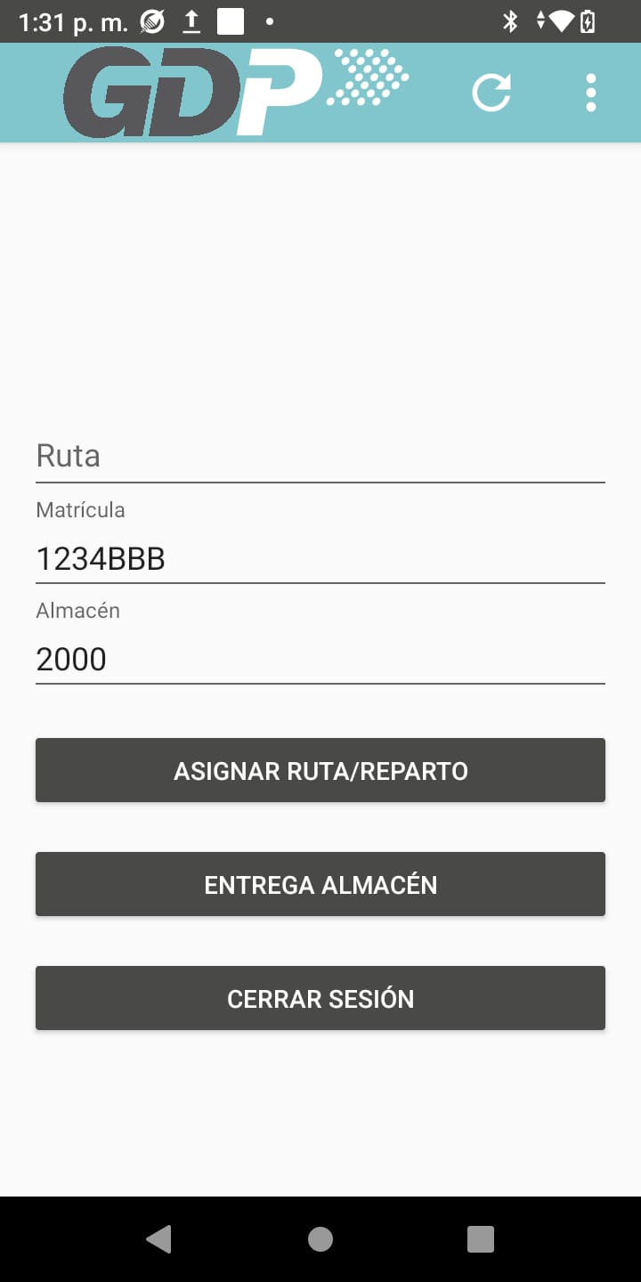 Introduce matrícula y pulsa ASIGNAR RUTA. Al finalizar la carga, verás solo farmacias con entrega.