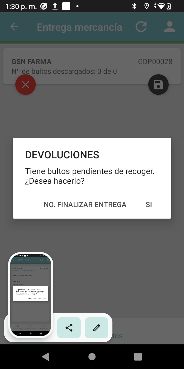 Es obligatorio vaciar la furgoneta virtual en ENTREGA ALMACÉN para cerrar sesión.
