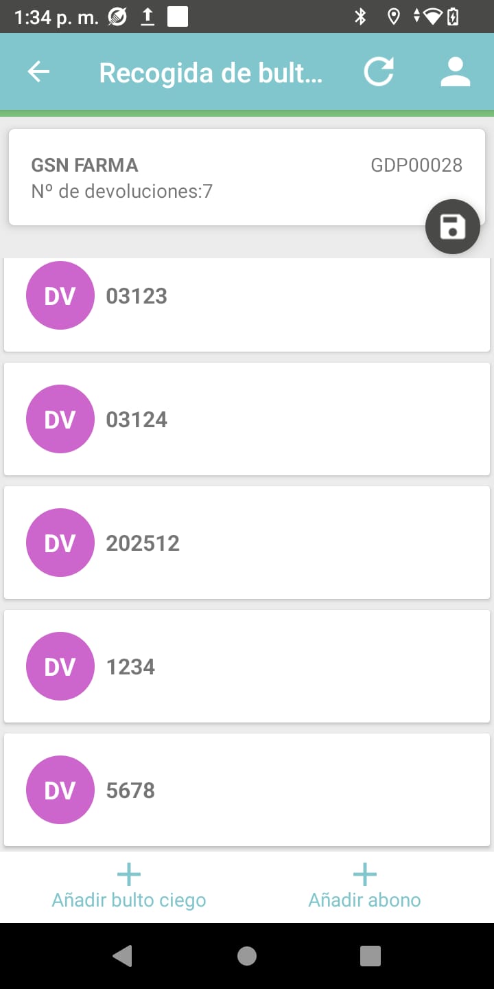 Recogidas: El estado Recogidas indica que el chofer lo tiene en su poder pero aún no ha llegado al almacén.